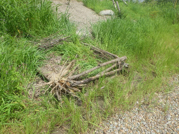 抜き取った草は、エコスタックを作って、生き物のすみかや、堆肥となるようにしました。