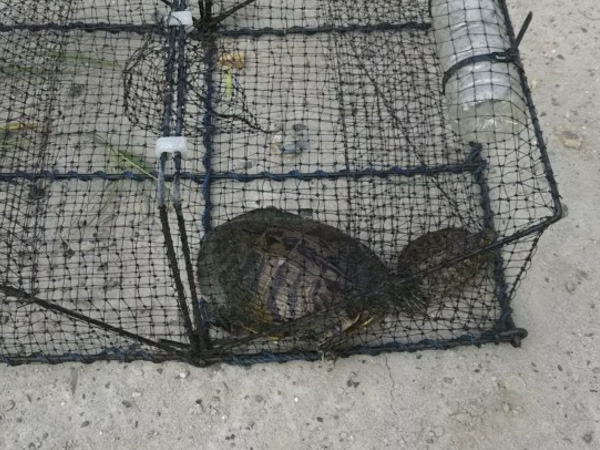 次は、池に生息する、悪名高きミシシッピアカミミガメの駆除を行います。