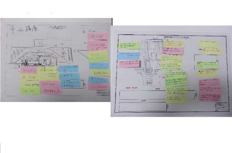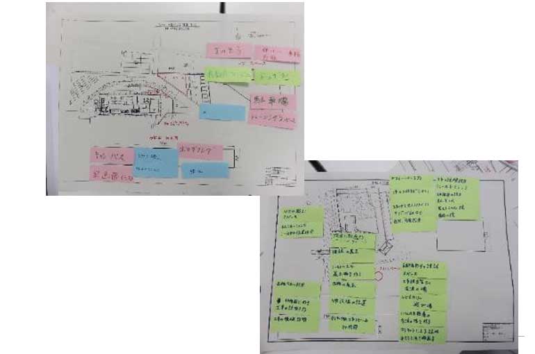 検討内容は、現場の万能塀や空きスペースを活用して何ができるかをグループで考えます。