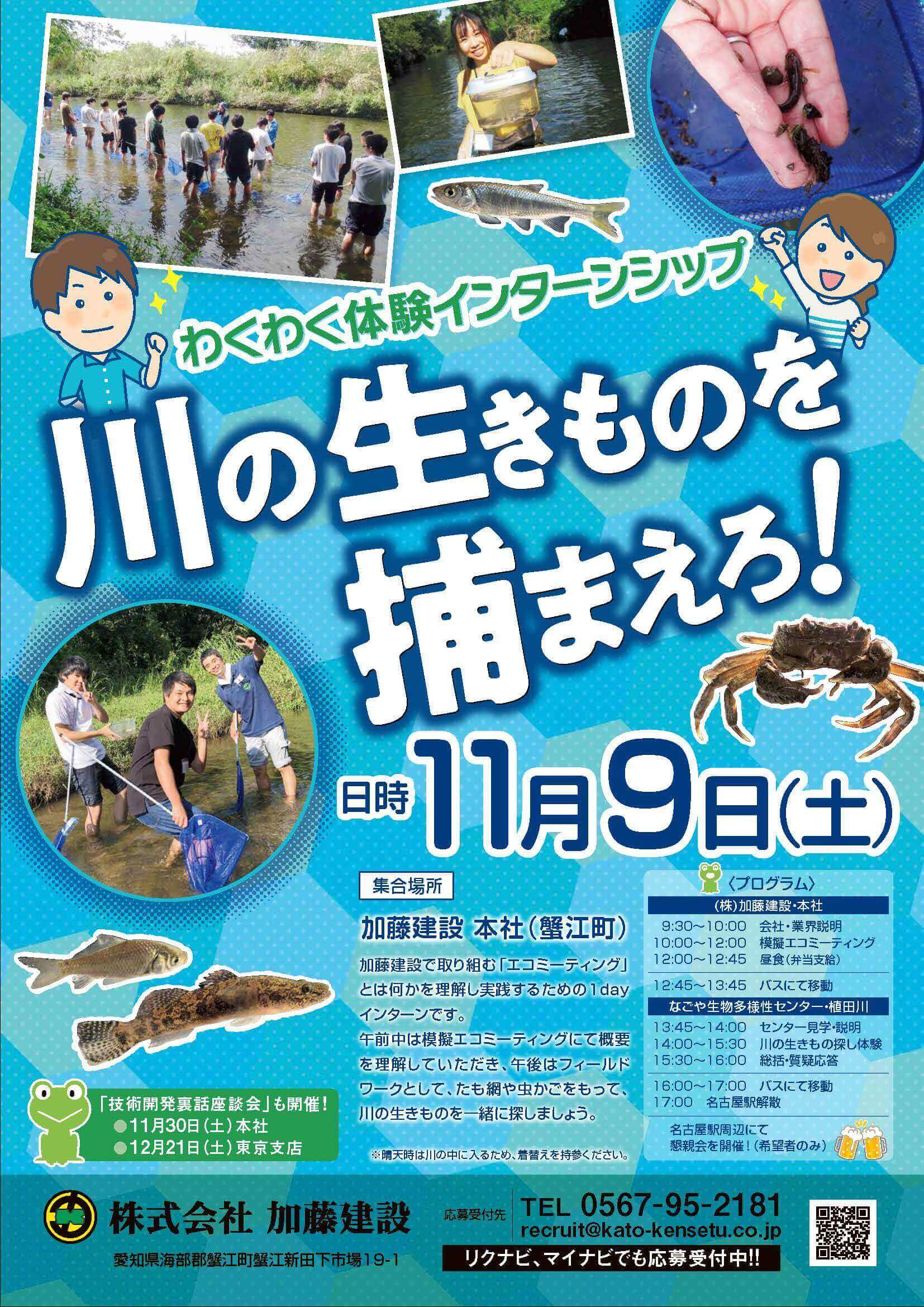 次回は11月9日に第2回目の川の生き物探しインターンを実施します。