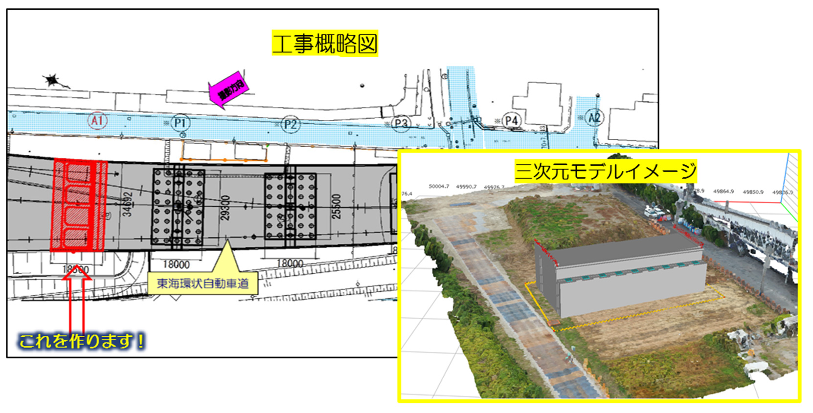 1つ目は、東海環状自動車道で行われている高架橋下部工事の現場。