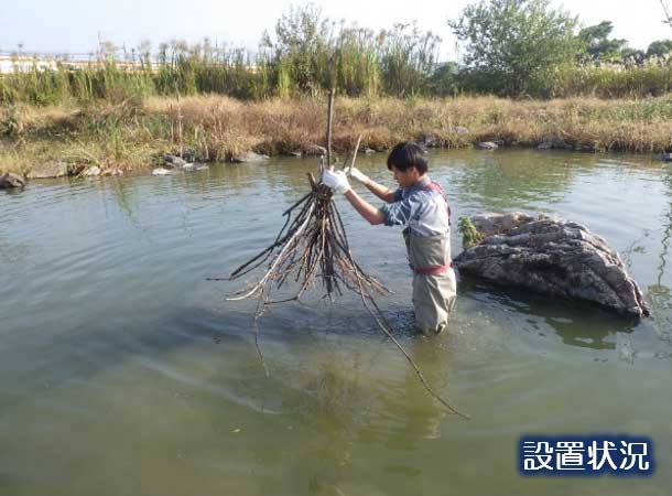 完成したエコスタックをビオトープの池にセッティング!