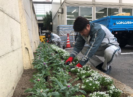 名古屋支店の花壇に花を植えました