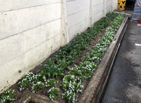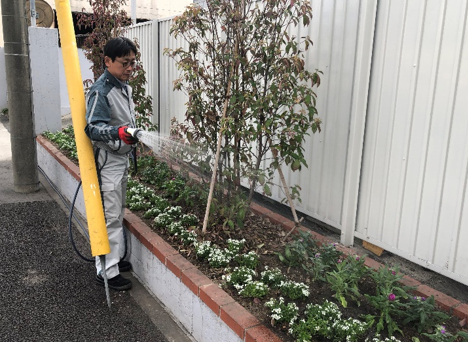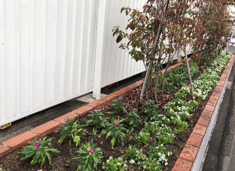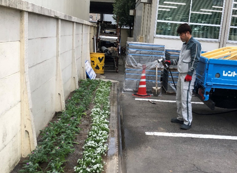 名古屋支店には、支店の駐車スペース壁沿いと、東側道路沿いに花壇が設置してあります。