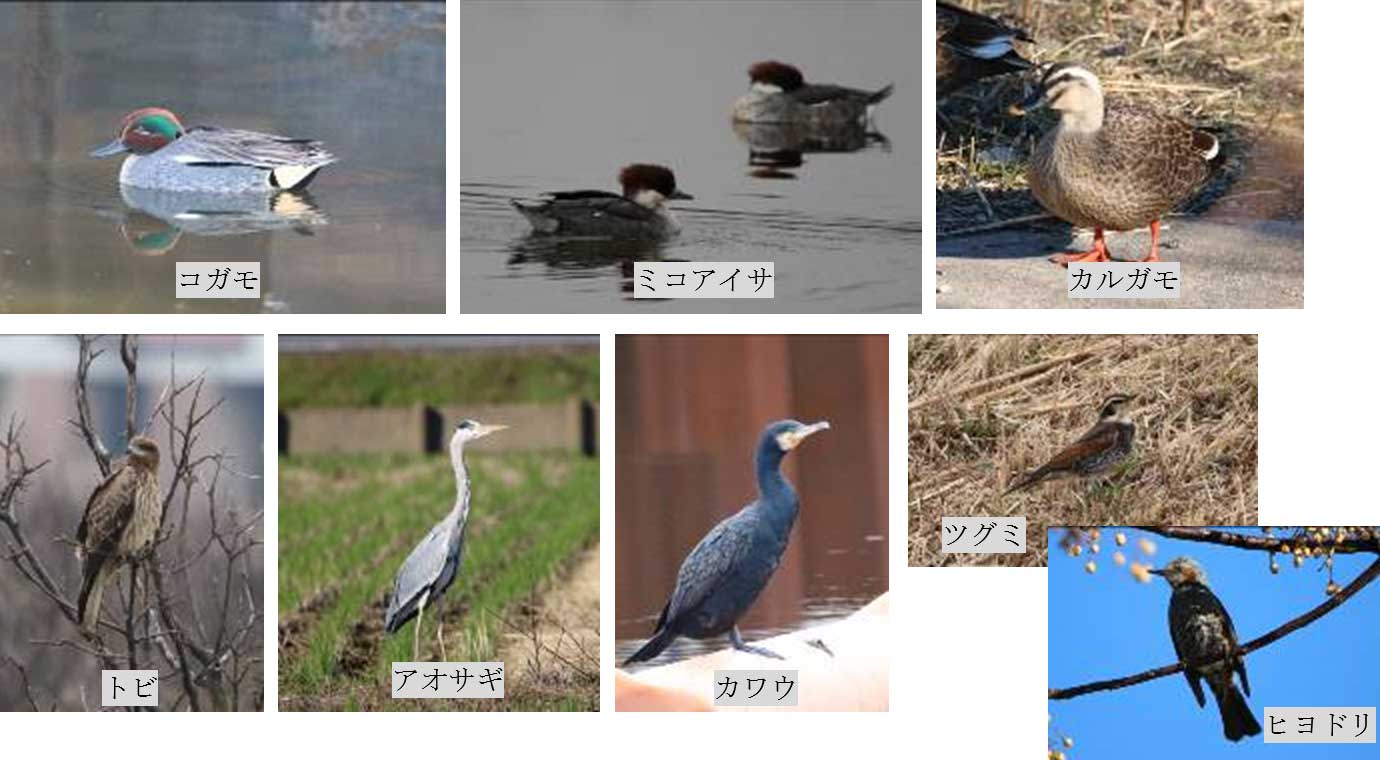 その他にはコガモ、ミコアイサ、カルガモ、トビ、アオサギ、カワウ、ツグミ、ヒヨドリなど計24種類の鳥たちを観察することができました。