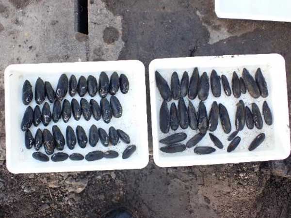放流するまでのあいだ、衣装ケースに水を入れて二枚貝を生かしておいたのですが…