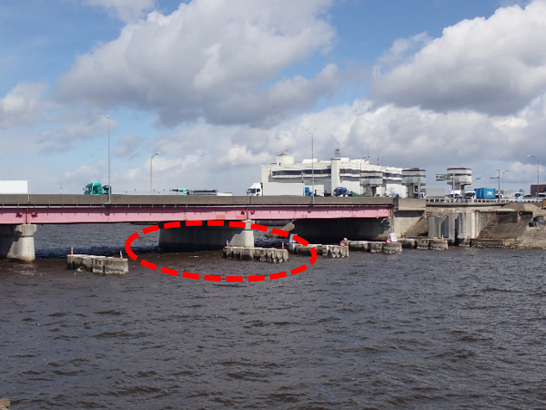 現場のすぐ近くには交通量の多い道路、ラムサール条約に指定されている干潟があります。
