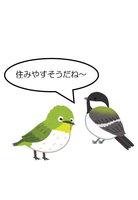 小さい巣箱は「シジュウカラ」「メジロ」などの小鳥を対象としたもの、