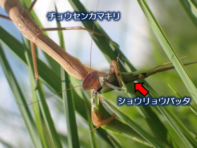 ちょうど“ショウリョウバッタ”が餌食(えじき)になっていました…(*_*)