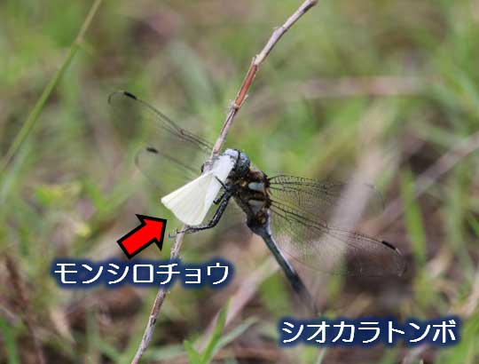 『シオカラトンボ』が『モンシロチョウ』を食べています!?衝撃的です!!