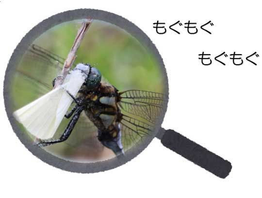 なんと!?シオカラトンボの“オス”が“メス”を食べているじゃありませんか!!