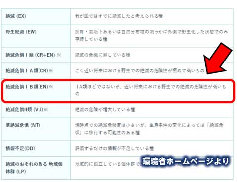 世界的に数が激減しており、日本では“絶滅危惧ⅠB類“に指定されています。