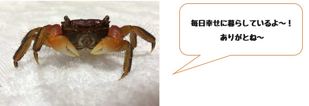 カトケンブースでベンケイガニをゲットし大切に育てていただいていました。
