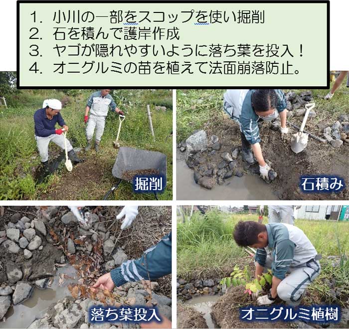小川の一部を掘削して、流れのない空間(ワンド)を作成!