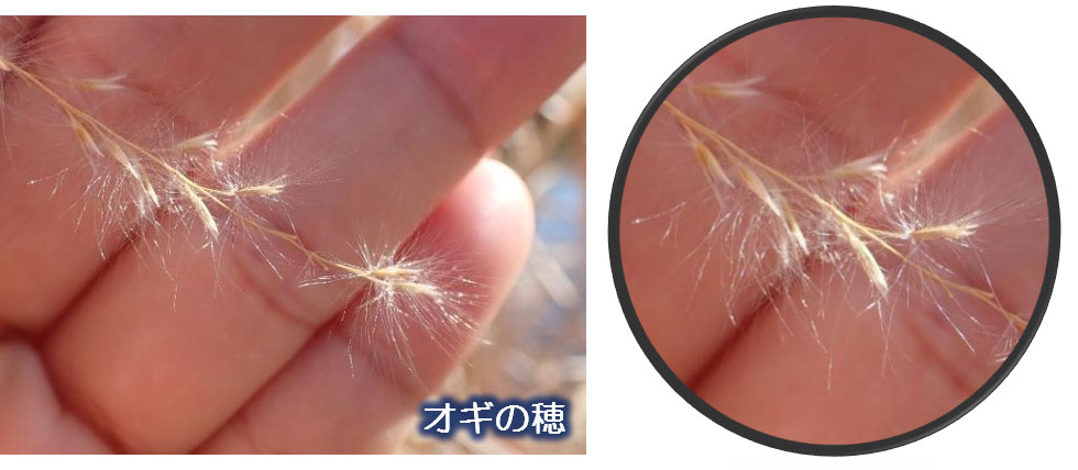 ただ、生育環境によっては分かりづらいこともあるので、オギとススキを見分ける時は、穂のノギの有無を見るのが、確実だと思いますよ。