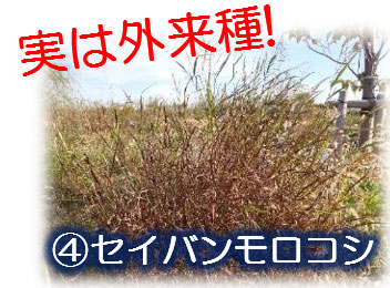 見分ける特徴は、穂の形。セイバンモロコシはススキのように