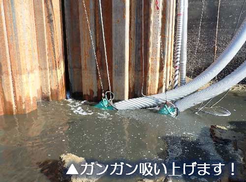 1分間に4000ℓ吸い上げることができる“8インチの水中ポンプ”を3台フル稼働です!