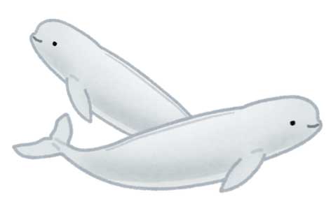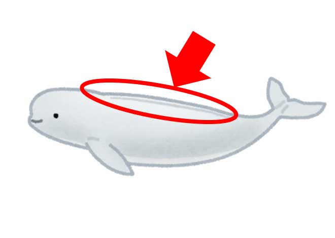 イルカとは違い、口先は丸く、背びれがほとんどないのが特徴。