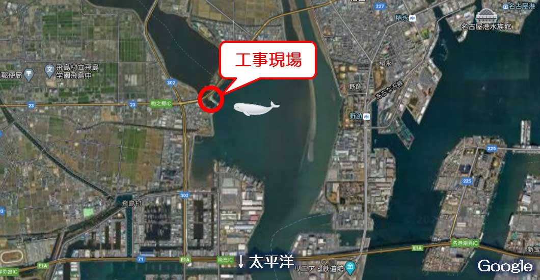 参考までに今回スナメリを見つけた場所を航空写真で見てみましょう!
