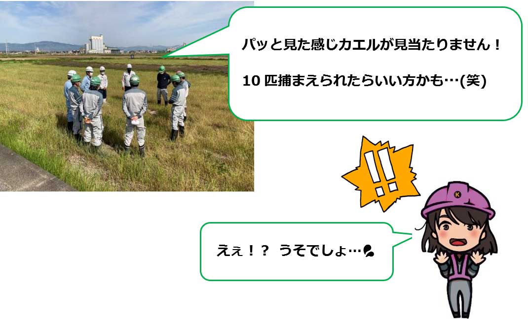 工事現場内にいる絶滅危惧種のナゴヤダルマガエルを保護するのを手伝って欲しい」