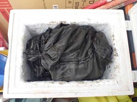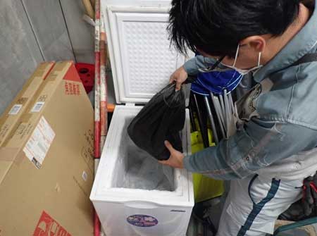 数個体ずつ土のう袋に入れ、冷凍庫にて-20℃以下で48時間以上保管。