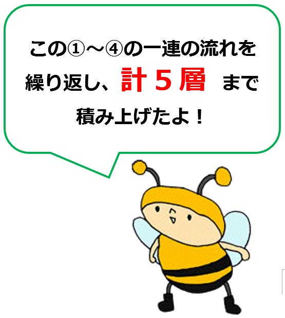 ① 2m×2m四方に、枯れ草を厚さ10~20cm敷き、