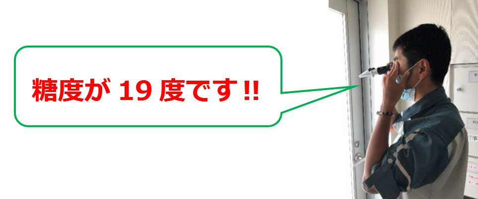 簡易型糖度計で計測したその時、社員のひとりが叫んだ。