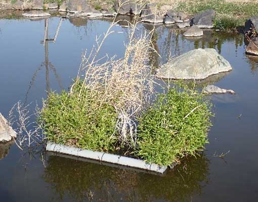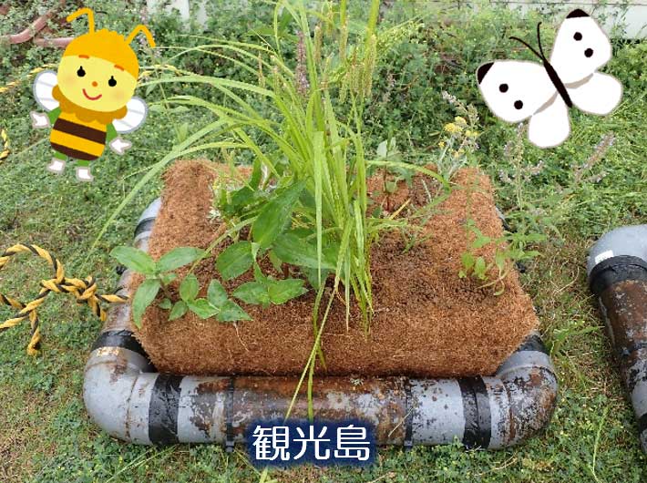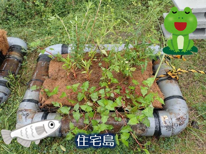 あとは、浮島に植えた植物たちがヤシマットに根を張り、