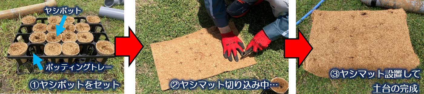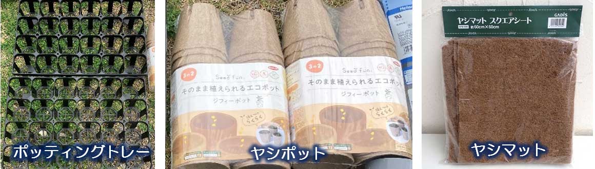 ポッティングトレーとヤシポットとヤシマットを使います。