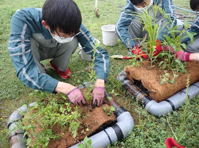水辺に生える在来植物を中心に植えました。 ラインナップはコチラ↓↓↓