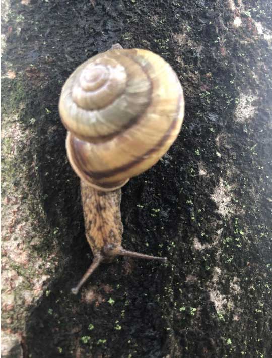 コンクリートの壁にいるのはよく見ますが、木にもいるのですね。