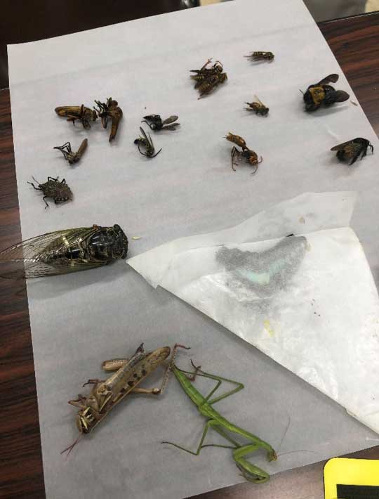 各自で捕獲した昆虫を管理者の方に見てもらいました。
