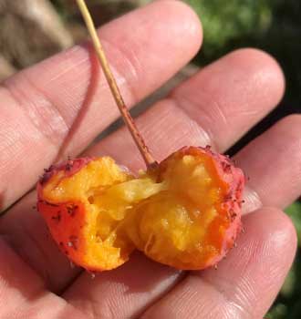 こんな見た目ですが、この実は食べると美味しいらしいんです!ちょっと食べてみましょう!