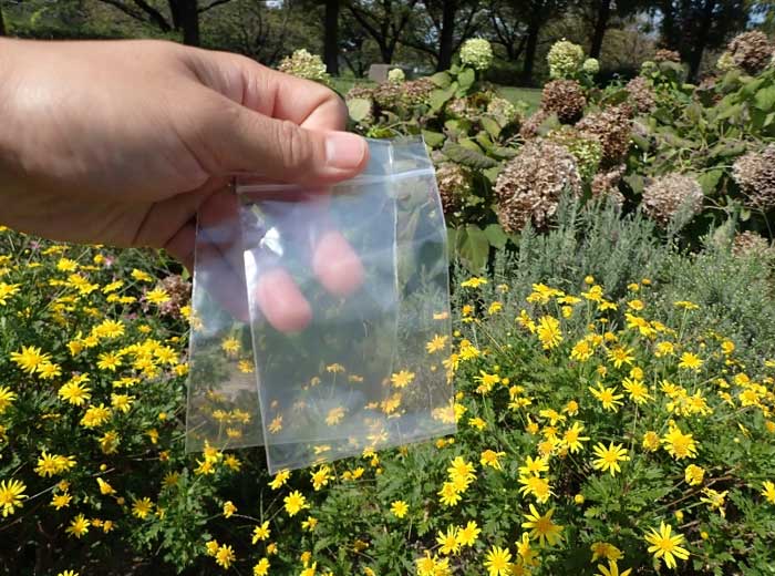 “スウィーピング”という方法で、虫捕り網を使ってテントウムシの捕獲を試みます!
