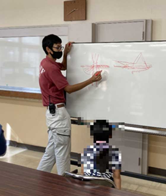 みんなで捕まえた虫を管理者の方々に見てもらいます。