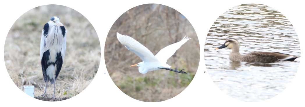 カモの仲間などシベリアから渡来する冬鳥で、水辺がにぎやか!