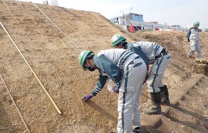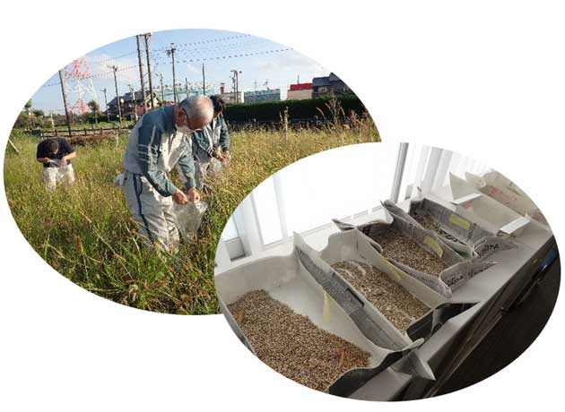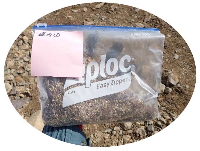 堤防などの法面(のりめん)工事の際に、まくことで在来植物の数を増やすというもの。