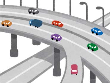 ぐる~と回って、高速道路から一般道へ合流する場所。