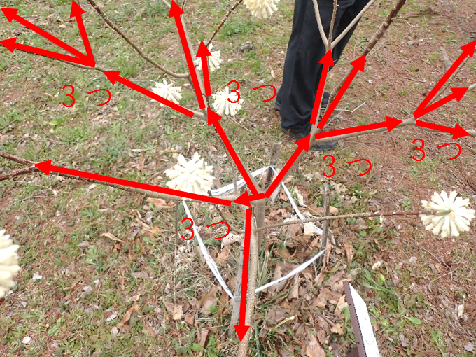 それぞれの枝が3つに枝分かれしているのが、分かりますか?