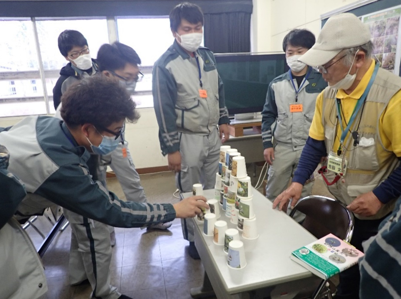 最後に、紙コップを使って“生態系”についてお勉強!