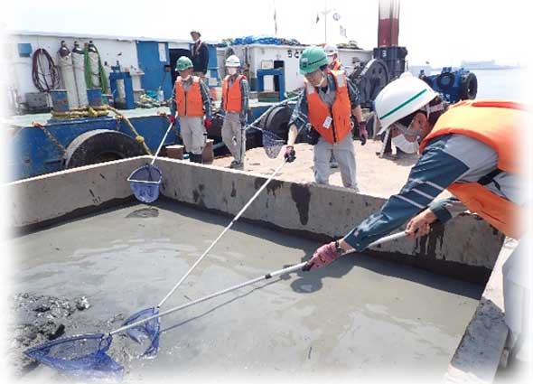 どんな生き物が見つかるかな? 浚渫の現場で生き物保護!