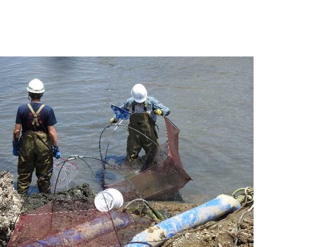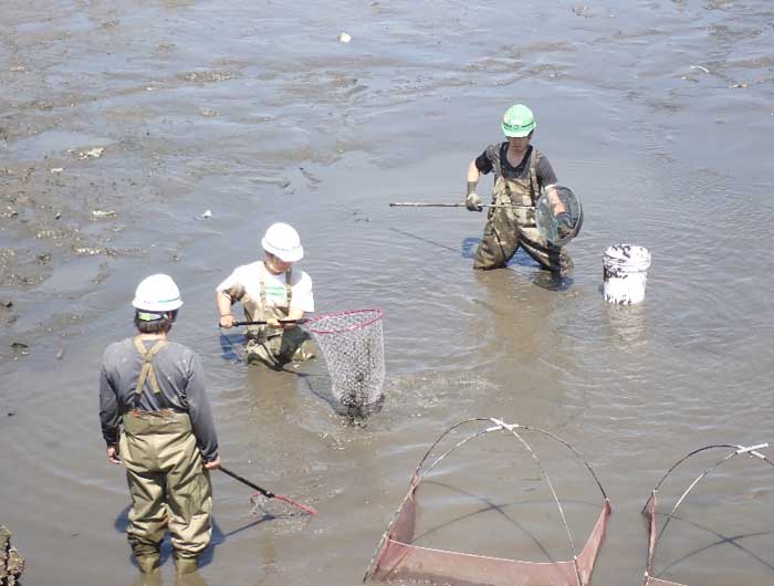 捕獲班 / 同定班 / 陸揚げ・放流班の3つにチーム分けをしました。