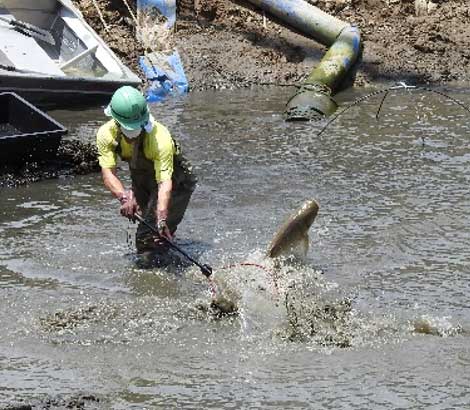 陸揚げ・放流班が安全な場所へ、リリースしていきます。