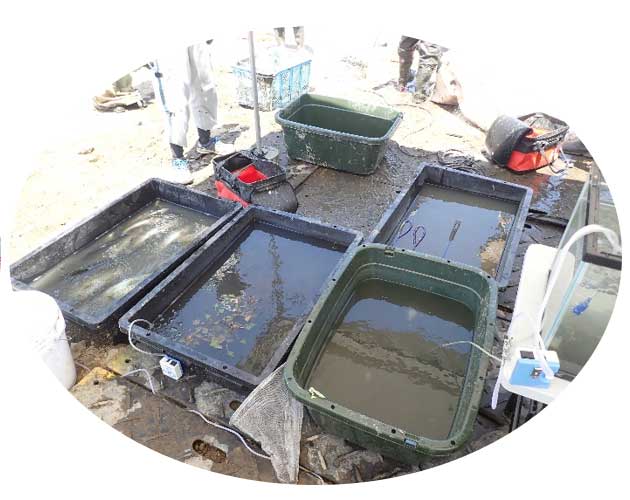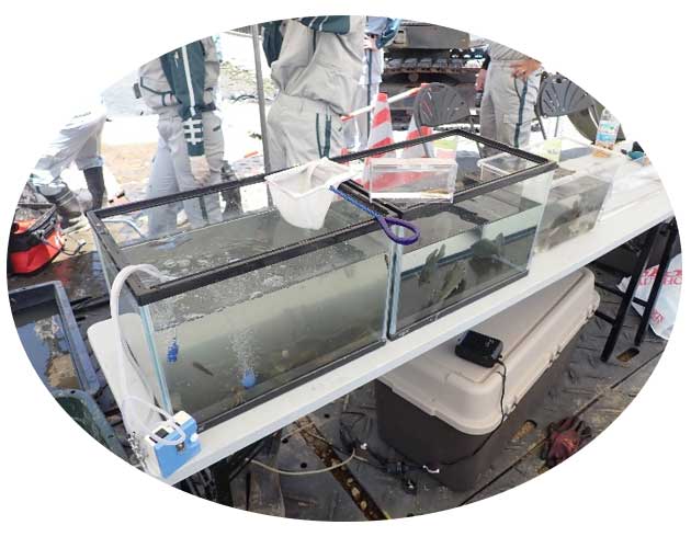 捕獲班 / 同定班 / 陸揚げ・放流班の見事な連携のおかげで、