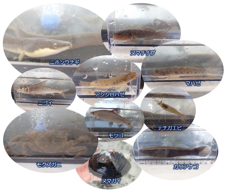 近年数が少なくなっているニホンウナギや汽水を好むハゼの仲間。