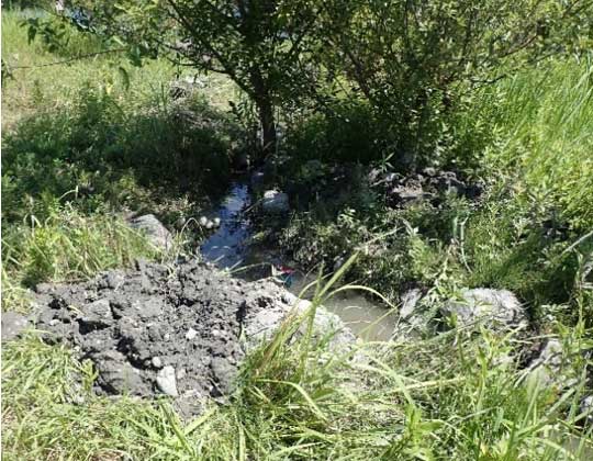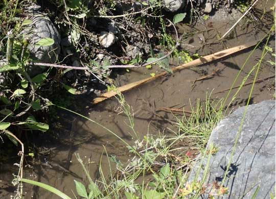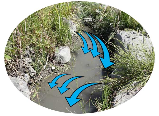 小川の横には、土の山が。こんなにも土が堆積していたんですね~。