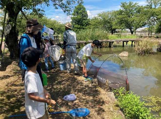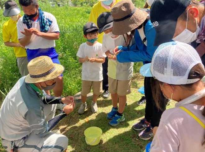 さて、愛西市親水公園では夏休みの企画として「自然観察会」が開催されました。