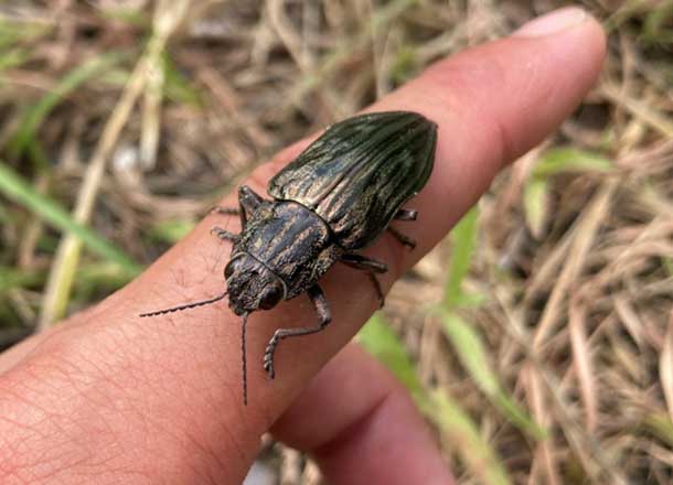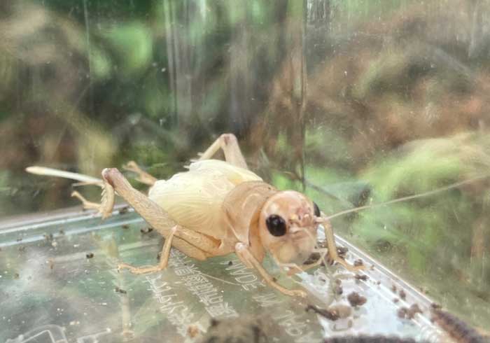 そんな天地返しの作業中、一匹のコオロギが現れました。