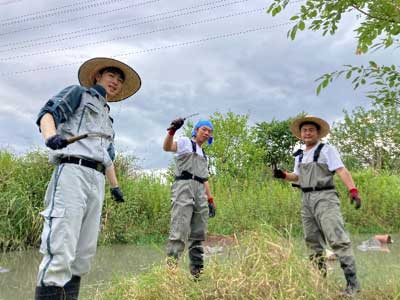刈り取った草を、先ほど天地返しをした場所に持っていき、整備は終了!