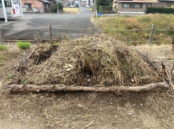 堆肥場がすでに草でいっぱいで、剪定した枝葉を追加するスペースがありません!?